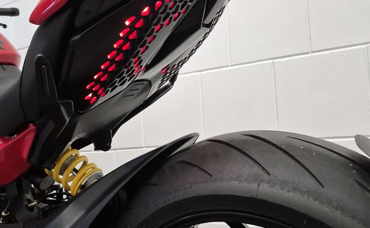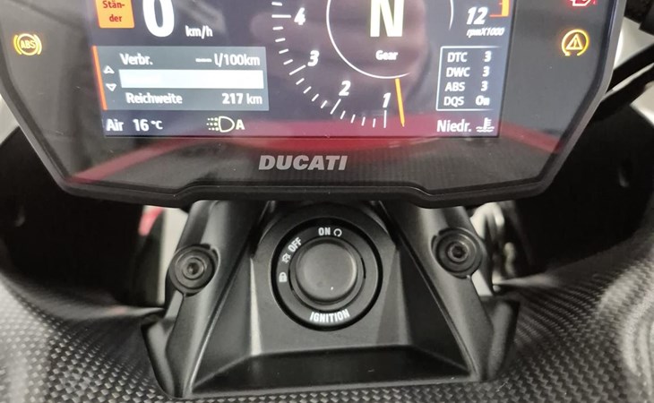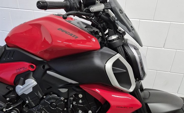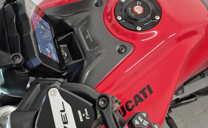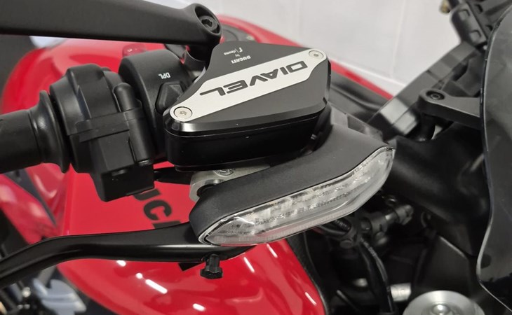 Sehr schöne Diavel V4 aus erster Hand inkl. LED-Lauflichtblinker hinten, Tankcover Carbon, Rizoma Tankdeckel (Original vorhanden), gefräste Bremsflüssigkeitsbehälterabdeckungen, Carbon Kotflügel vorne.
