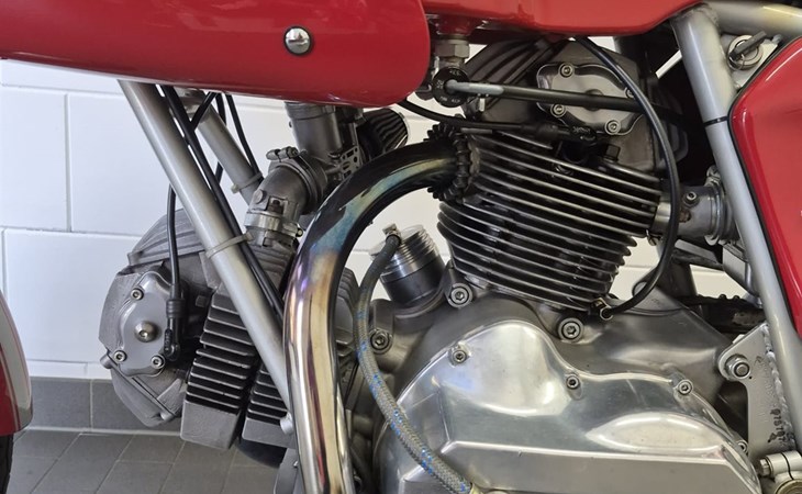 Rare opportunity to catch a 750SS in brilliant condition. The bike was built in 1975 and got on the road in 1977. Only two owners in the last 50 years. The second owner was a long time customer who already visited our workshop beginning in the late 80s. Last motor run was in November 2025 and the bike is ready to go. The frame has its first color and has never been repainted.