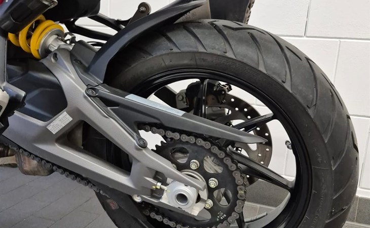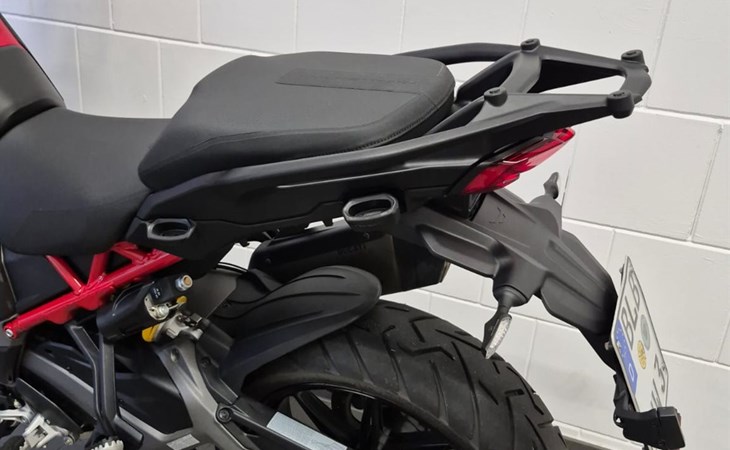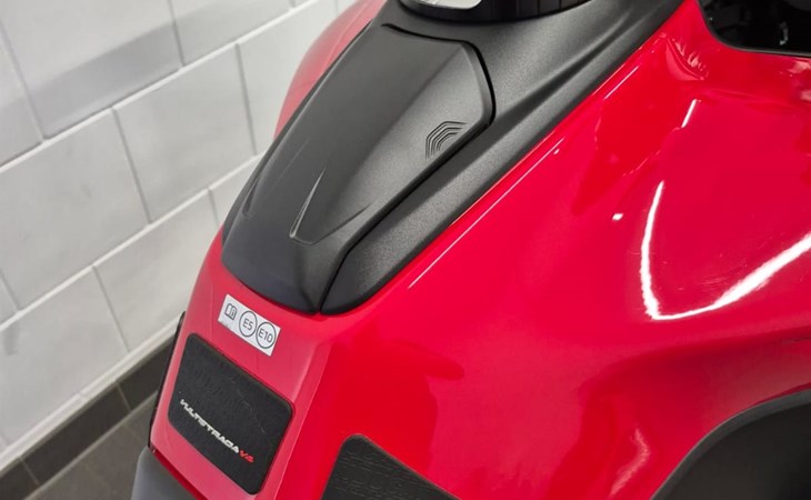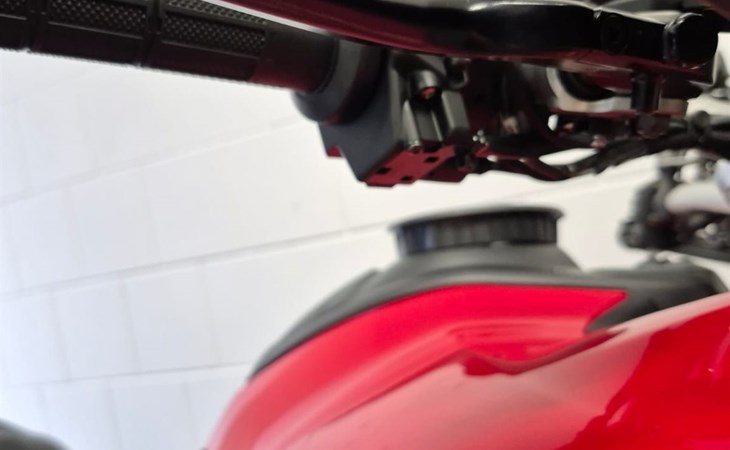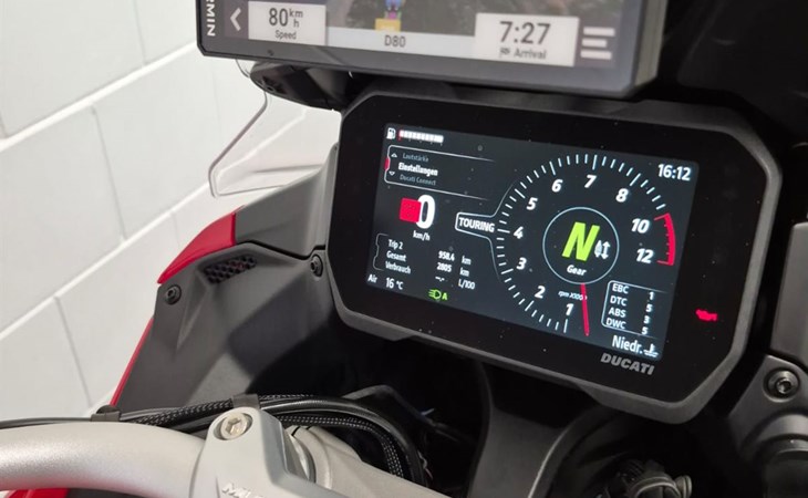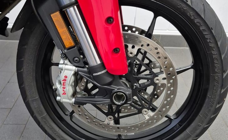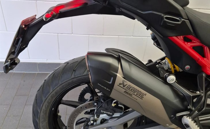 Inklusive Lauflichtblinkern hinten, zugelassenem Akrapovic Endschalldämpfer, Ducati Performance Handhebel, Vorbereitung für Navigation, Heizgriffe, Tankpad, gefräste Deckel für Behälter am Lenker.