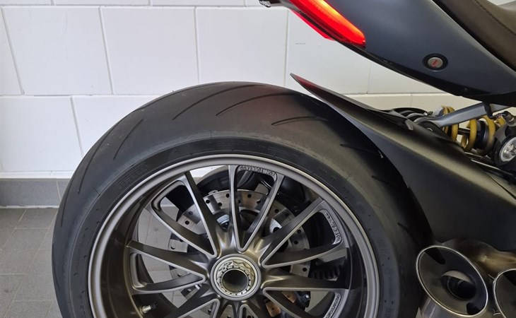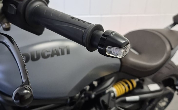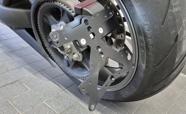 Seitlicher Rizoma Kennzeichenhalter mit Zulassung für beste Sicht auf den breiten Hinterreifen.