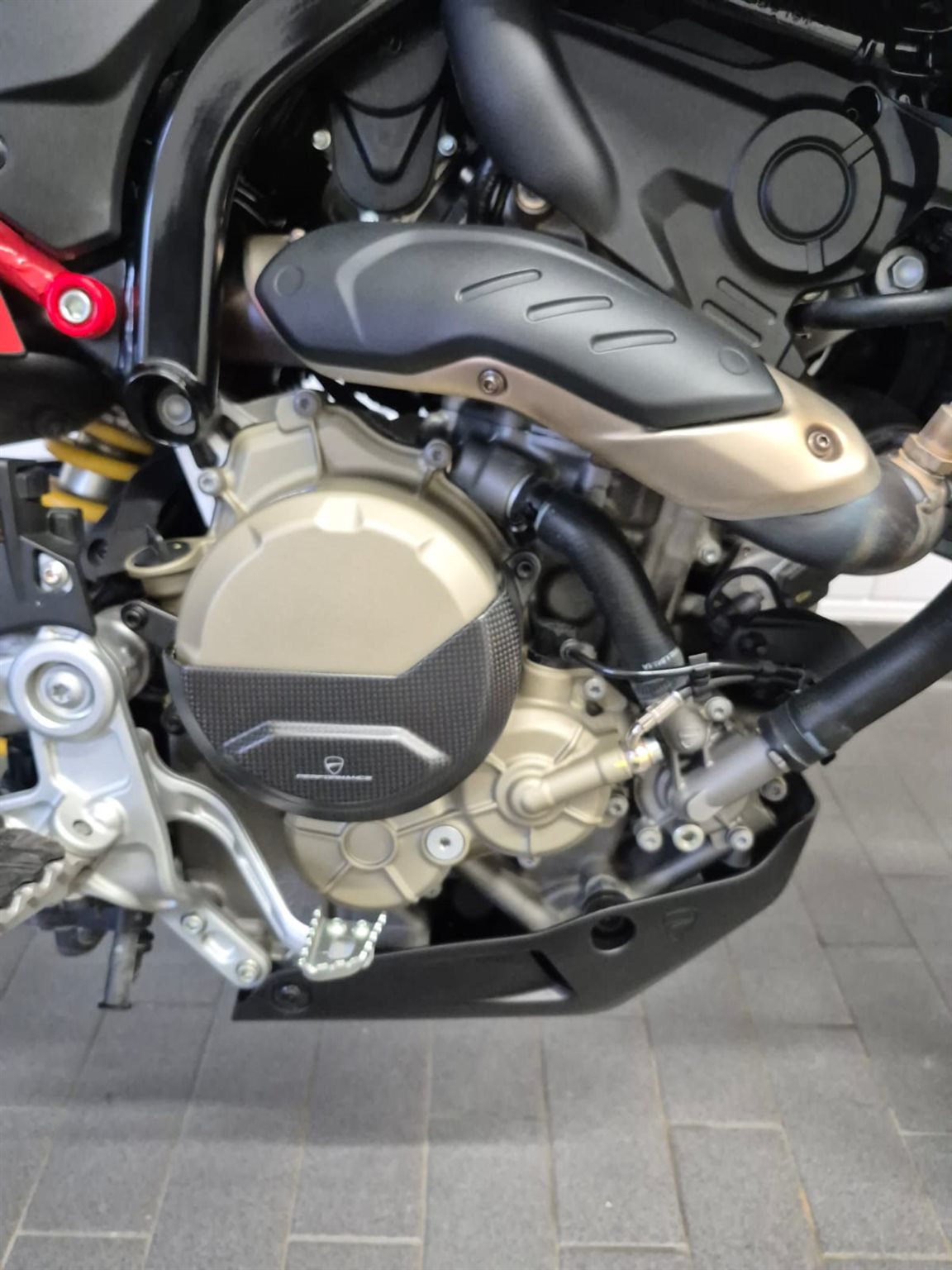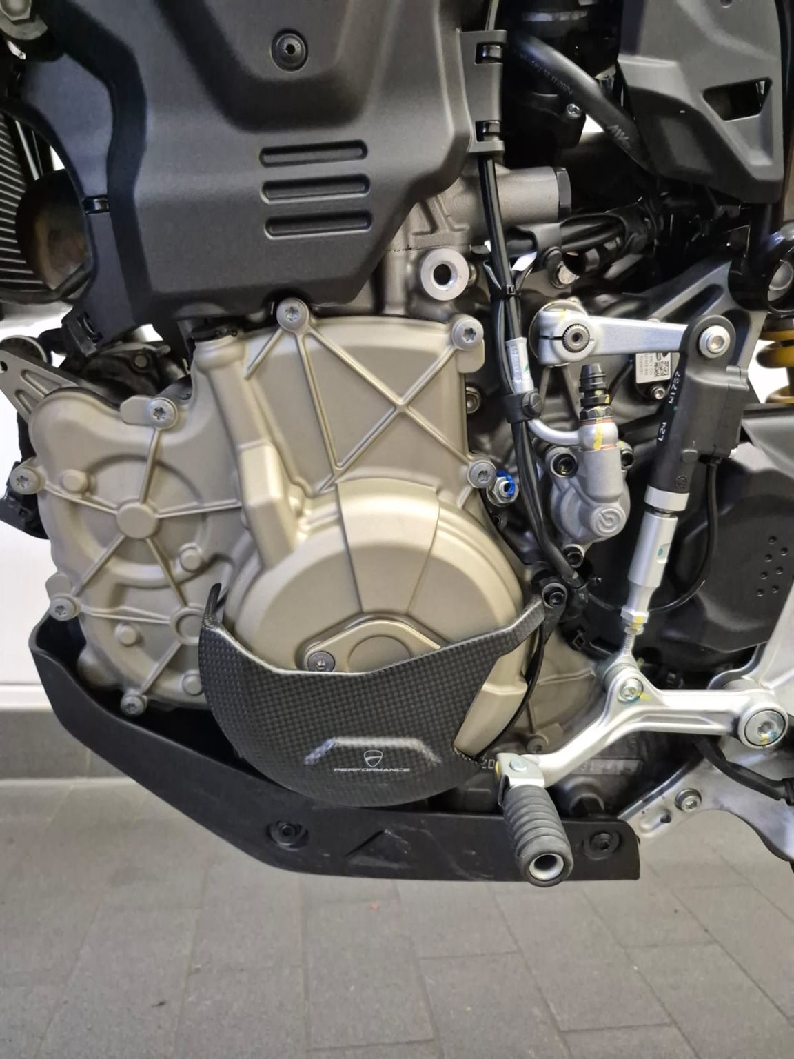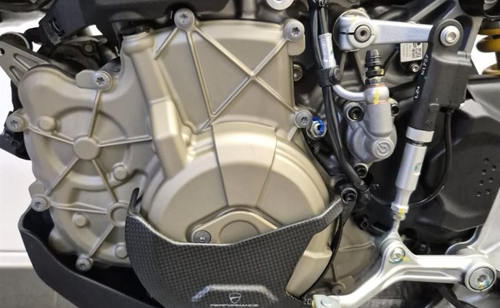 Inklusive zugelassenem Termignoni Endschalldämpfer, Kohlefaser Frontabdeckung, Kohlefaser Motorschützer links/rechts, Achsschützer vorne/hinten, Ducati Performance Hebel.