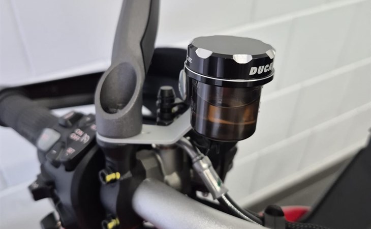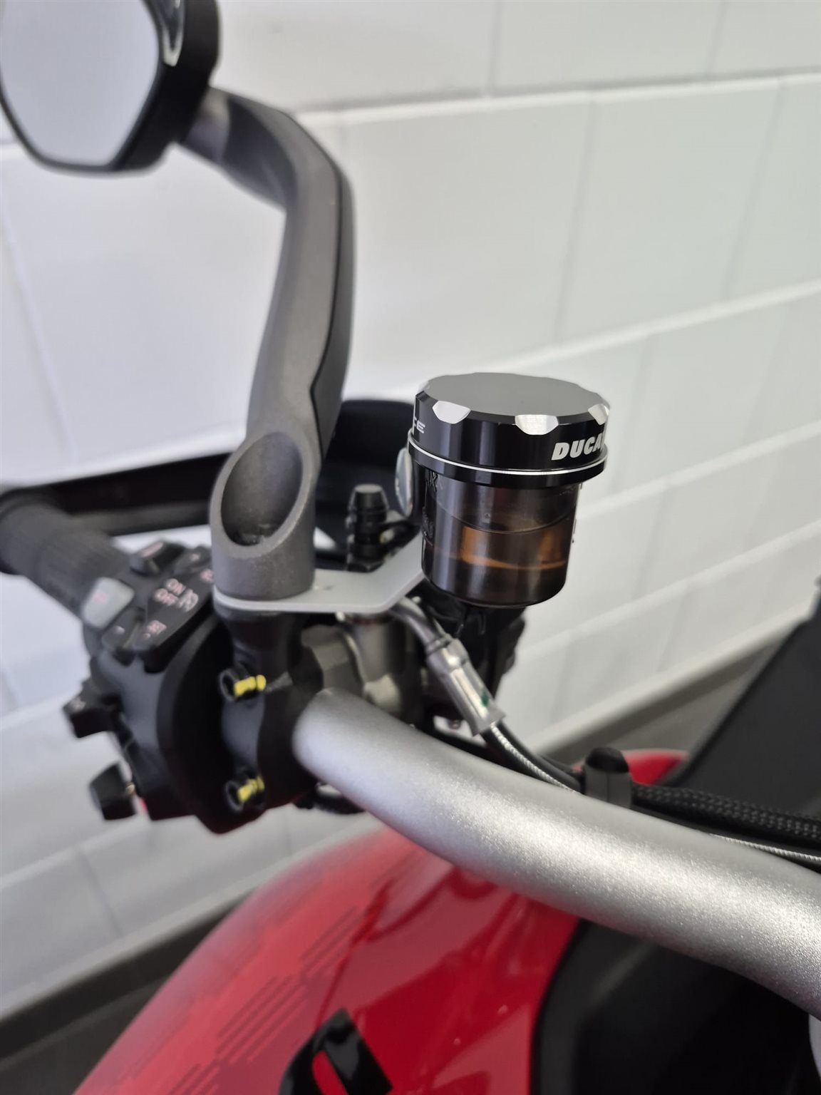 Vorbereitet Für Garmin Zumo XT-Baureihe. inklusive Ducati Performance Hebel, Heizgriffe, dreiteiliges Tankpad, Tankring, Ducati Performance Blinker hinten, gefräste Abdeckungen für die Brems- und Kupplungsflüssigkeitsbehälter am Lenker.